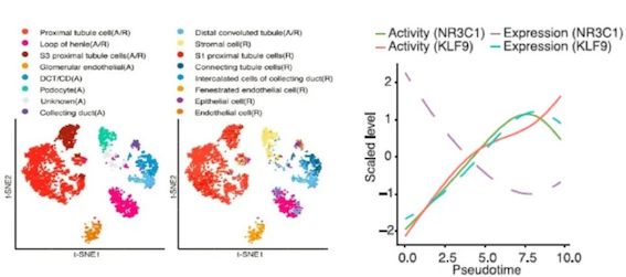圖6 細胞群預測(左) 圖7 轉(zhuǎn)錄調(diào)控機制(右)