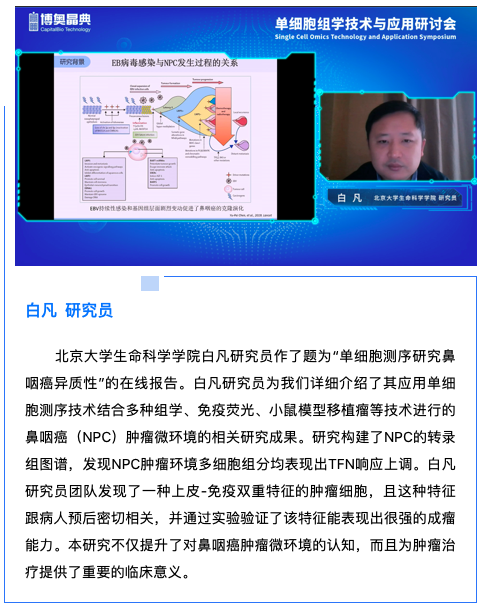 2020年10月31日,由生物芯片北京國家工程研究中心、北京博奧晶典生物技術(shù)有限公司主辦的“單細胞組學技術(shù)與應(yīng)用研討會”在北京成功舉辦。在疫情防控新形勢下,本次大會以線下現(xiàn)場會議與線上遠程會議相結(jié)合的形式舉辦,打破時空及地域限制,以更寬更廣的交流平臺,讓全國各地的單細胞領(lǐng)域?qū)<覍W者共同見證本次大會的精彩瞬間。本次會議線上累計直播瀏覽量超6000人次,線下100余位嘉賓出席。會議特采用專業(yè)級演播大廳進行直播報告,通過5G+4K+AR的創(chuàng)新技術(shù)和高品質(zhì)傳輸進行全程實時直播,為現(xiàn)場及遠程參會代表帶來極好的視聽體驗。