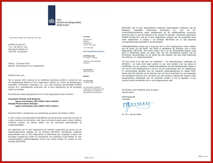 ? ? ? 近日,博奧晶典聯(lián)合清華大學(xué)成功研發(fā)的由新型冠狀病毒2019-nCoV核酸檢測試劑盒(全集成碟式芯片法),英文名稱:SARS-CoV-2 Nucleic Acid Detection Kit (Integrated Isothermal Amplification Chip Method)和全自動(dòng)核酸分析儀,英文名稱:Automatic Nucleic Acid Analyzer組成的全集成芯片實(shí)驗(yàn)室系統(tǒng)獲CE準(zhǔn)入資質(zhì)(證書號(hào):NL-CA002-2021-55957和NL-CA002-2021-55450),獲CE準(zhǔn)入資質(zhì)表明該產(chǎn)品符合歐盟醫(yī)療器械相關(guān)指令的符合性要求,具備歐盟市場的準(zhǔn)入條件,將為歐洲地區(qū)的新冠疫情防控工作提供高靈敏度全集成快速檢測工具。