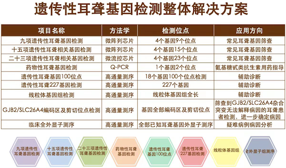 博奧晶典遺傳性耳聾相關(guān)基因檢測(cè)芯片的不斷升級(jí)迭代,有助于篩查出更多環(huán)境因素致聾基因變異的人群,盡早為其提供生活指導(dǎo),降低后天不良環(huán)境因素導(dǎo)致耳聾發(fā)生的風(fēng)險(xiǎn),早診斷、早干預(yù)、早治療。目前,博奧晶典已推出基于微陣列芯片、微流控芯片及高通量測(cè)序平臺(tái)一系列產(chǎn)品及服務(wù),包括:九項(xiàng)遺傳性耳聾基因檢測(cè)、十五項(xiàng)遺傳性耳聾基因檢測(cè)、二十三項(xiàng)遺傳性耳聾相關(guān)基因檢測(cè)、藥物性耳聾基因檢測(cè)、遺傳性耳聾基因檢測(cè)(100項(xiàng))、遺傳性耳聾基因檢測(cè)(227個(gè)基因)、線粒體基因組檢測(cè)、全外顯子組基因檢測(cè)等,為孕檢夫婦、新生兒及聽(tīng)障人群提供最佳的篩查、診斷方案,同時(shí)提供專(zhuān)業(yè)的報(bào)告解讀及后續(xù)遺傳咨詢(xún)服務(wù),以實(shí)際行動(dòng)全面助力耳聾三級(jí)防控,減少聾兒的發(fā)生。