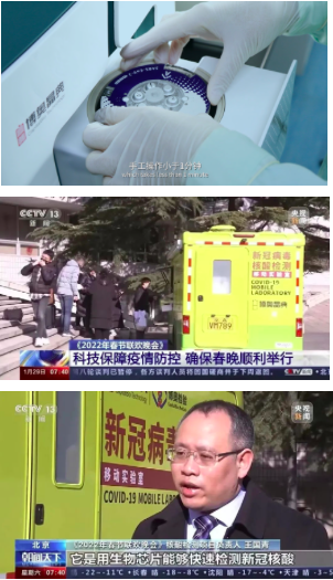 在2021、2022年央視春晚疫情防控工作中,以及2022年冬奧會開幕倒計時100天主題活動等重大活動中,“輕騎兵”均發(fā)揮了重要作用。這抹備受矚目的“晶典黃”是國內(nèi)首臺集采集和檢測為一體的移動式新冠病毒檢測實驗室,裝載基于全新一代先進(jìn)的芯片實驗室(Lab-on-a-chip)設(shè)計理念,檢測時僅需將樣本保存液加入芯片,封閉芯片后即可上機,手工操作小于1分鐘。生物反應(yīng)全程(包括核酸提取、核酸純化、擴(kuò)增反應(yīng)、核酸檢測和結(jié)果判讀等)均集成在一個整體密閉、內(nèi)部分區(qū)的微流控芯片內(nèi),由全自動核酸分析儀完成,因此無需專業(yè)分區(qū)實驗室,無需人工干預(yù),最大程度降低操作人員感染及樣本間交叉污染的風(fēng)險。
