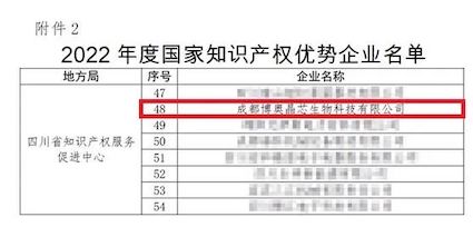 近日,國家知識產(chǎn)權(quán)局發(fā)布了“2022年度國家知識產(chǎn)權(quán)優(yōu)勢企業(yè)”評定結(jié)果公示。經(jīng)企業(yè)測評、推薦上報(bào)、省市專家審核確認(rèn)等嚴(yán)格篩選程序,博奧晶典旗下成都博奧晶芯生物科技有限公司(以下簡稱:博奧晶芯)憑借在知識產(chǎn)權(quán)創(chuàng)造、運(yùn)用、保護(hù)和管理方面的優(yōu)勢,榮獲“2022年度國家知識產(chǎn)權(quán)優(yōu)勢企業(yè)”稱號。