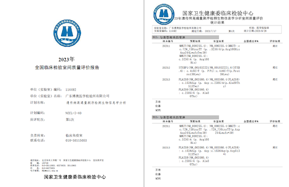 近日,國(guó)家衛(wèi)生健康委臨床檢驗(yàn)中心(NCCL)發(fā)布了關(guān)于《2023年遺傳病基因變異高通量測(cè)序室間質(zhì)量評(píng)價(jià)結(jié)果》,博奧晶典旗下廣東博奧醫(yī)學(xué)檢驗(yàn)所以滿(mǎn)分成績(jī)通過(guò)。這是繼2023年9月博奧晶典滿(mǎn)分通過(guò)《遺傳病高通量測(cè)序檢測(cè)生物信息學(xué)分析室間質(zhì)評(píng)》后的又一個(gè)滿(mǎn)分,再次證實(shí)博奧晶典在遺傳病高通量測(cè)序檢測(cè)領(lǐng)域優(yōu)異的質(zhì)量水平。