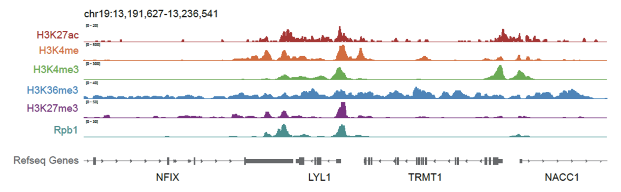 · 5種組蛋白修飾:H3K27ac、H3K4me1、H3K4me3、H3K27me3、H3K36me3;