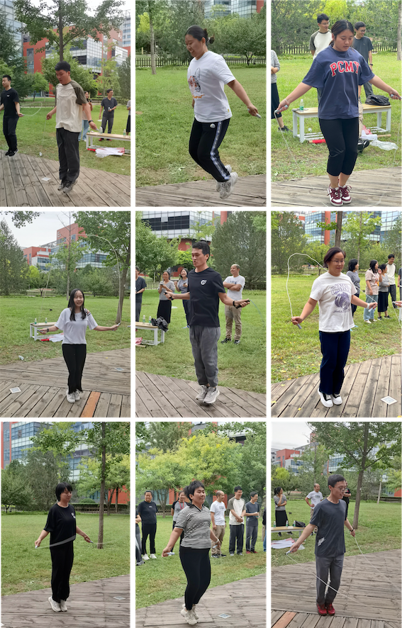 隨著裁判起跳命令響起,計時開始,緊張刺激的氛圍布滿全場,大家揮動雙臂、騰挪跳躍,全力以赴比拼速度與耐力。比賽現(xiàn)場笑聲歡呼聲不斷,精彩紛呈。