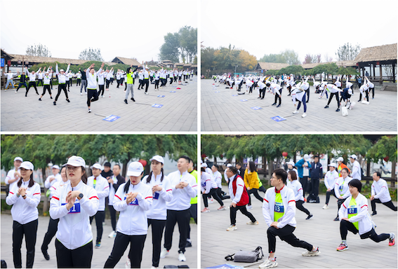 越野拉力賽前,所有參賽選手于通州大運河東岸漕運碼頭休息長廊廣場集合進行賽前熱身,通過熱身提升關(guān)節(jié)靈活性,降低可能帶來的運動損傷風險。
